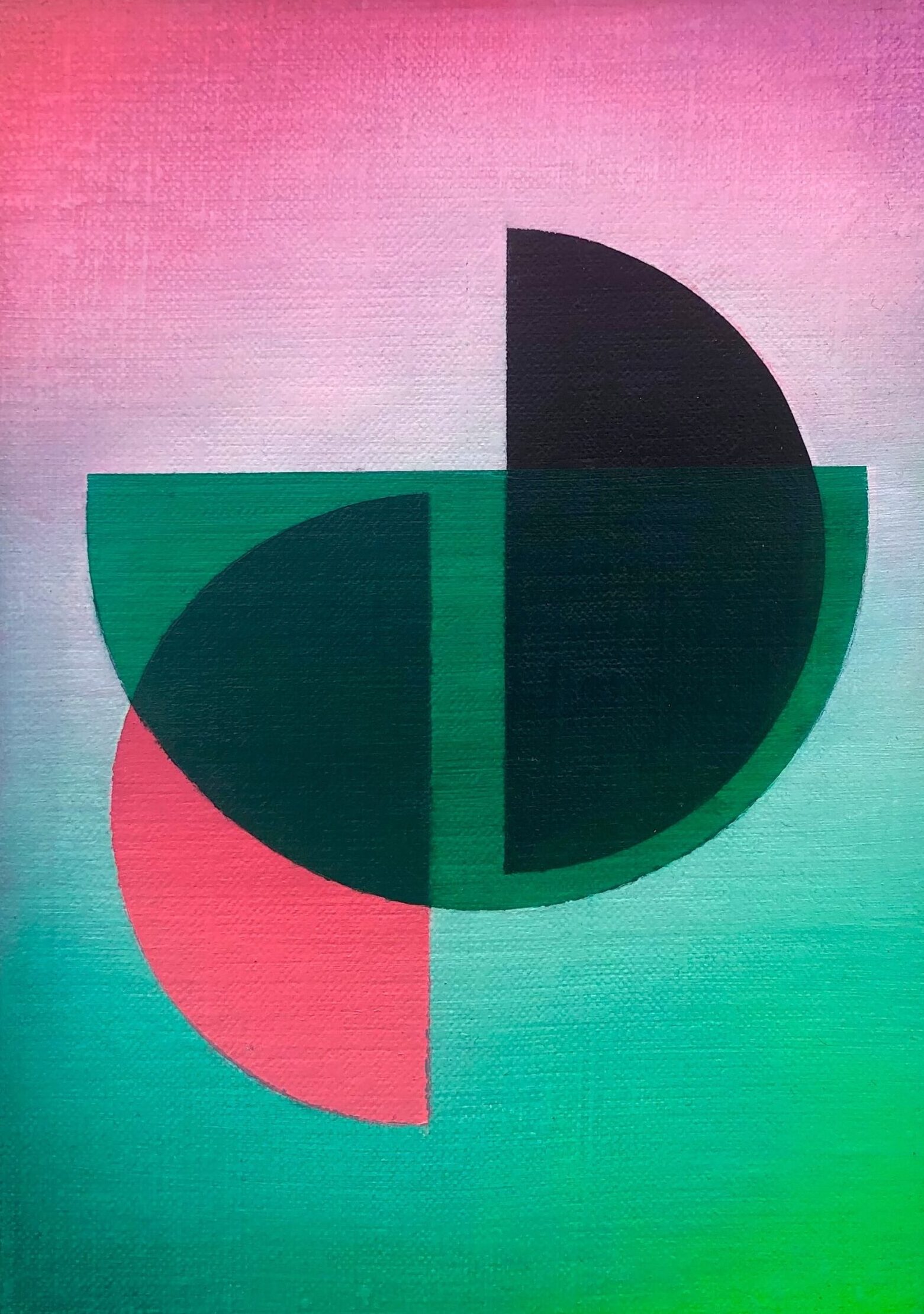 'Chroma Shape Cyan Fuchsia - Acrylic & oil on 300g paper Caroline List 2020