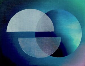 Caroline List: Colour Suspension Sculpture & Shape Chroma Painting – oil on linen (Sold)